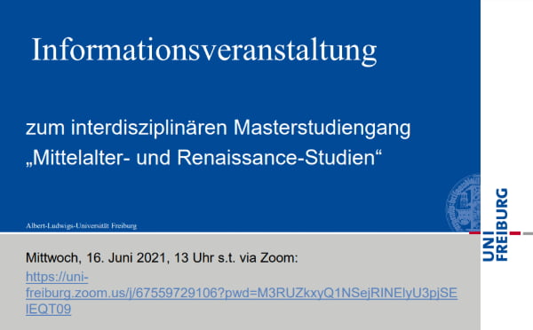 Masterstudiengang Mittelalter- und Renaissance-Studien 2021
